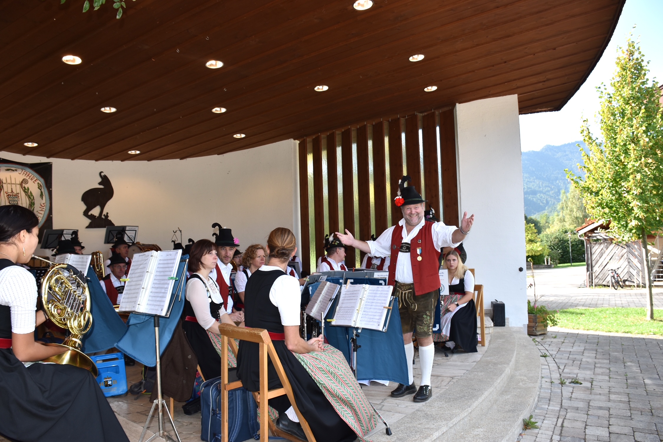 Dirigent Walter Reisenauer spielt und begrüßt zum Frühschoppen-Doppel-Konzert (Foto: Wunderlich)