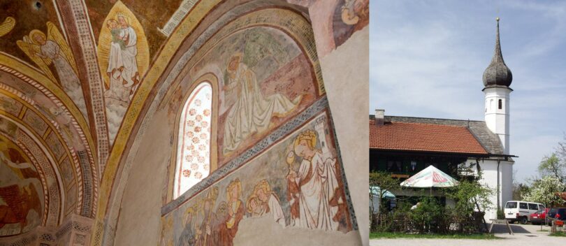 Wieder frei gelegte Bilderzyklen aus zwei Epochen zählen zu den am besten erhaltenen im oberbayerischen Raum und versetzen den Zuhörer in die Zeit der Biblia pauperum, einer umfangreichen Bilderbibel des Mittelalters. Viele überraschende Erklärungen die sich in der Bildersprache der Fresken verstecken erklärt Helga Schömmer auf spannende Weise und mit großem Wissen. Weltberühmt ist dabei die Dreifaltigkeitsdarstellung mit drei Häuptern, deren frauenhafte Mittelfigur seit jeher kontrovers diskutiert wird und zu regen Diskussionen führt.