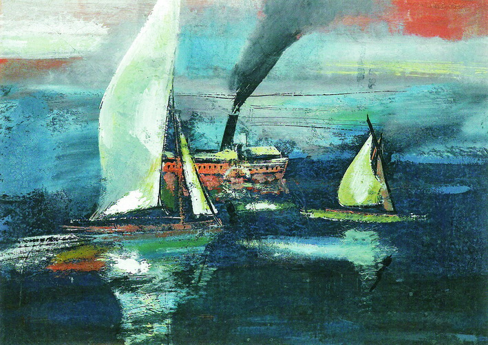 Foto: Raddampfer und Segelboote 1941, Tempera – aus einer Privatsammlung