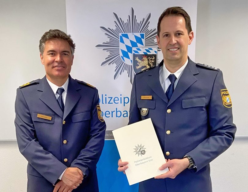Bericht und Foto: PP Oberbayern Süd –  Polizeipräsident Manfred Hauser und Erster Polizeihauptkommissar Matthias Krümpel