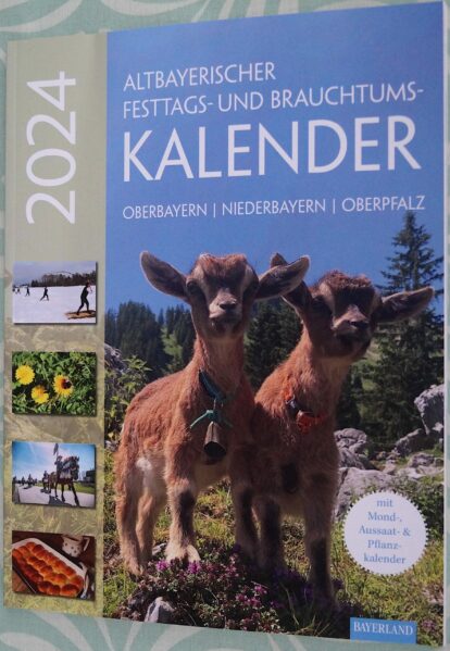Im 25. Jahr erschien nun der Altbayerische Festtags- und Brauchtumskalender für das Jahr 2024 für Oberbayern, Niederbayern und die Oberpfalz. Die Volkskundlerin, Autorin und Projektmanagerin Dorothea Steinbacher und die Rundfunkjournalistin Judith Kumpfmüller haben ihn als Hausbuch zur Begleitung durch das Jahr konzipiert und wollen die Leser mit ihrer Begeisterung für die bayerische Brauchtumslandschaft anstecken. In dieser Ausgabe gibt es zum Jubiläumsjahr mehrere Angebote für die Leser, zum Beispiel die Möglichkeit, einen Buchpreis zu gewinnen oder die Einladung des bayerischen Landesvereins für Heimatpflege zur Teilnahme an einer Umfrage zum jeweils liebsten Brauch (www.brauchwiki/lieblingsbrauch). Der Aufheiterung dienen die zahlreichen, typisch bayerischen Witze. Je nach beruflicher oder persönlicher Ausrichtung sind der 100-jährige Kalender, der Holzschlag-, Aussaat- und Pflanzkalender, sowie ein Veranstaltungskalender zu jedem Monat und die Mondzeiten von Nutzen.