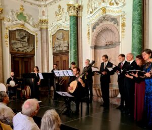 „Mit Lust tret‘ ich an diesen Tanze“ – Festkonzert im Kaisersaal des ehem. Barockklosters St. Mang. „Artifex residentiea“: Mitwirkende von Cantvs München und Converto dei Venti beim Abschlußkonzert. (Fotograf: Richard Hartmann)