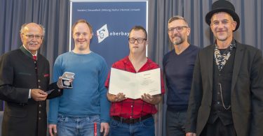 Bericht und Foto: Gemeinde Unterwössen: Das Bild zeigt (von links nach rechts) Zweiten Bürgermeister Johannes Weber als Bürgermeister im Amt, Bauamtsleiter Hans Thullner, zugleich als Geschäftsleiter im Amt, Baggerführer Anton Dirnhofer und Montageleiter Matthias Brandl. Nicht auf dem Bild ist der Mitarbeiter des zuständigen örtlichen Stromversorgers Peter Haslreiter.