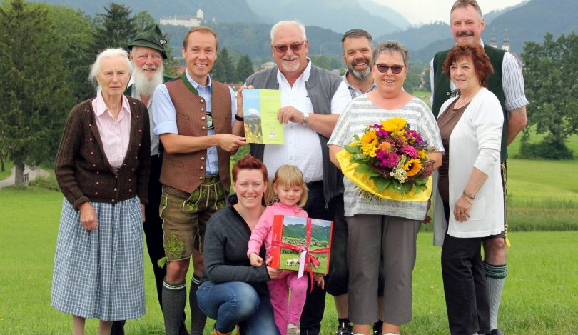 Seit 135 Jahren ist Aschau im Chiemgau ein beliebter und anerkannter Tourismusort. Eine herausragende Gästeehrung konnte nun im Priental gefeiert werden. Bereits zum 70.mal verbringen Christa und Wolfgang Pütz (Vierter und Sechste von links) mehrmals im Jahr ihre schönsten Tage in Aschau i.Chiemgau. Von Anfang an sind die treuen Gäste aus Overath im Café Pauli bei Familie Kink untergebracht. Für Aschaus Tourismuschef Herbert Reiter (Dritter von links) eine Freude, für so langjährige Treue zum Priental bei einer kleinen Feierstunde eine Ehrenurkunde und ein Geschenk zu überreichen. „Zufriedene und langjährige Gäste sind die beste Werbung für einen Tourismusort wie Aschau i.Chiegmau“, so Reiter. Inzwischen reist schon die dritte Generation der Familie Pütz mit an, und das Enkelkind Leni hat zusammen mit ihrer Mutter Tina Pütz-Baldauf (Vorne) und deren Lebensgefährten Bernd Steingrüber (Fünfter von links) ebenfalls die Liebe zum Priental entdeckt. Einen ganz erheblichen Beitrag zum Wohlfühlen im Urlaub leisten die perfekten Gastgeber wie hier Anita und Paul Kink (rechts) und die Seniorwirte Gundi und Paul Kink sen. (links).