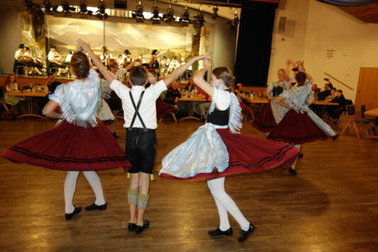 Und die vielen Besucher im Saal beantworteten die Frage mit einem herzlichen Beifall für die gekonnt vorgetragenen Darbietungen. Die Aktive Gruppe startete mit dem „Reit im Winkler Plattlermarsch“ in das reichhaltige Programm und gefiel auch mit weiteren schneidigen Schuhplattlern und harmonisch dargebotenen Trachtentänzen wie Sterntanz, Kronentanz oder Steierer. Auch die Jugendgruppe zeigte beim Plattln, beim Dreisteierer und beim Laubentanz, dass sie sich trotz der dafür etwas ungewohnten Jahreszeit gewissenhaft auf ihre Auftritte vorbereitet hatte. Mit anmutig dargebotenen heimischen Volkstänzen wie Siebenschritt, Kuckuckspolka oder Boarischer wartete die Historische Gruppe in ihrer gediegenen alten Reit im Winkler Tracht auf.