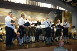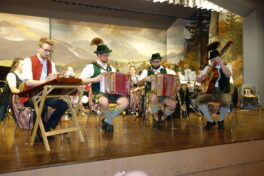 Die Musikkapelle Reit im Winkl begleitete exakt die Trachtler bei ihren Auftritten und spielte klangvolle Blasmusikweisen. Althergebrachte heimische Volkslieder wie „Hoam sollt i geh“ oder den Glockenjodler bot mit geübten Stimmen der Männergesangverein Reit im Winkl unter der Leitung von Fritz Enthammer. Schwungvoll und frisch trat die Vereins-Stubenmusi mit Jonas Karg und Dominik Landenhammer mit der Ziach, Fabian Landenhammer am Hackbrett und Andreas Willers mit der Gitarre auf. Letzterer führte auch mit viel Sachverstand und Humor durch den abwechslungsreichen Abend.