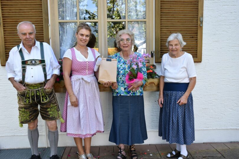 Schon zum 30. Mal verbringt Michelle Pillois aus Frankreich ihren Urlaub in Schleching bei Muck und Renate Pletschacher. Bis 2022 war sie immer gemeinsam mit ihrem Mann Lionel hier, der vor zwei Jahren leider verstarb. Sie blieben nicht nur ein paar Tage, sondern meist neun bis zehn Wochen. Ihr Zuhause ist in dem Ort Le Paradou in der Provence. Auf die Frage warum sie so gern nach Bayern in den Chiemgau kommt, wurde geantwortet „ich mag die Menschen, die Kultur, die Traditionen, die Kirchen, das Essen und die Berge. Das Klima ist uns im Sommer zu Hause zu warm, hier im Gebirge ist es angenehmer“.