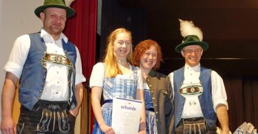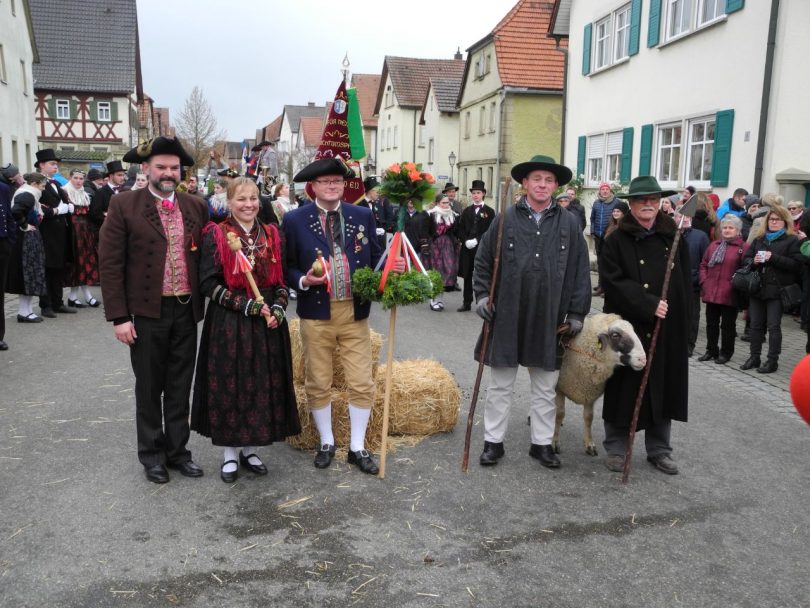 Traditionell am 2. Sonntag nach Martini feiern die Geldersheimer ihre Kirchweih. Der späte Kirchweihtermin geht auf einen Erlass des Fürstbischofs Adam Friedrich von Seinsheim aus dem Jahr 1764 zurück. Die Galderschummer Kerwa beginnt am Freitagabend mit einem fränkischen Tanzabend, bei dem die Fichtenburschen in Gehrock und Zylinder gekleidet den Tanz eröffnen. Die Fichtenmädchen tragen die Geldersheimer Tanztracht. Am Samstag werden vor den Wirtschaften die Kirchweihfichten aufgestellt und jeweils eine Ehrentour getanzt. Die Kirchweihpaare heißen deswegen auch Fichtenpaare, weil sie vor den Wirtschaften die Fichten aufstellen. Am Samstag tragen sie die Werktagstracht. Sie sind die Repräsentanten der Kirchweih und gestalten das ganze Wochenende. Am Samstagabend besuchen sie in schicker moderner Kleidung den Tanz des Sportvereins und sind am Sonntagfrüh wieder mit Festtracht beim Festgottesdienst in der St. Nikolauskirche. Am Nachmittag führen sie den für Geldersheim typischen Hammeltanz auf. Dabei tanzen die Fichtenpaare und weitere Tanzpaare um den Kirchweihschäfer und den Hammel herum. Dabei wird ein Blumenstrauß herumgereicht. Dasjenige Paar, das beim Klingeln des Weckers den Buschen in der Hand hat, ist das neue Hammelkönigspaar und wird groß gefeiert. In diesem Jahr haben die Schriftführerin und unser Kassier Monika und Martin Erhard den Hammeltanz gewonnen. Darauf haben sie sich schon viele Jahre gefreut. Heuer hat es endlich mal geklappt. Herzlichen Glückwunsch den beiden. Am Abend ziehen dann die Fichtenpaare, die Trachtler und zahlreiche Kirchweihgäste mit der Blaskapelle mit einem Fackelumzug zum neuen Königspaar, welches dann am Haus eine Ehrentour tanzt und zum Umtrunk einlädt. Anschließend geht’s zur Proklamation zurück in den Tanzsaal. Am Montagnachmittag findet ein Wirtshaussingen im Saal statt und am Abend spielen die Musikanten noch mal zum fränkischen Tanz bei Kerzenschein im Saal auf. Am Montag, dem vierten Kirchweihtag geht’s dann nicht mehr ganz so turbulent zu, wie am Freitag beim Tanz, aber es wird dennoch noch mal fleißig getanzt. Die typischen Kirchweihtänze sind Walzer, Rheinländer, Schottisch und als Zugabe noch ein Züpferle (=Dreischrittdreher). Es werden aber auch Figurentänze getanzt. Am Freitagabend zum Beispiel auch die Weidenberger Francaise auf die Melodie der Fledermaus Quadrille. In diesem Jahr konnten wir eine Delegation aus dem Lechgau an der Kirchweih begrüßen. Gauvorstand Franz Multerer und Mitglieder des Gauausschuss haben von Freitag bis Sonntag die Kerwa mitgefeiert. Zum Abschluss der Kerwa treffen sich dann am Freitag nach der Kirchweih noch mal die Fichtenpaare und die Trachtler zum Hammelessen. Danach wird die Kerwa wieder begraben und es gilt abzuwarten bis am 31.10.2018 die Kirchweihweinprobe den neuen Kirchweihreigen eröffnet und in der Nacht auf Allerheiligen die Kirchweih wieder ausgegraben wird. Dann heißts „Die Kirchweih 2018 – Sie lebe – Vivat – Hoch!“.