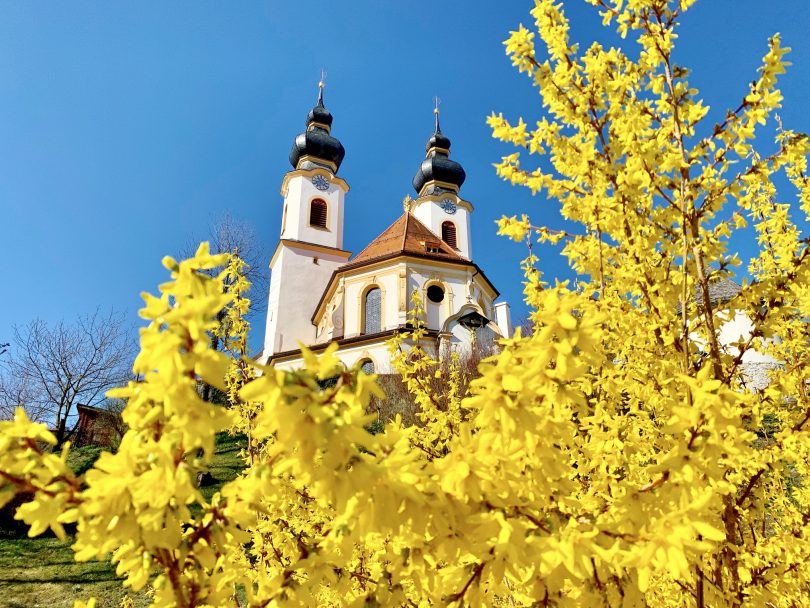 Es könnte nicht besser passen, dass genau zur Premiere am Samstag, 30. März 2019 zum Auferstehungsspiel, das Aschauer „Hl. Grab“, sich auch das Umfeld strahlend präsentiert. Über Nacht ist nun wahrhaft der Frühling ausgebrochen und auch zu erleben. Umgarnt von der goldgelben Blütenbracht der Forsythien, ragt die Katholischen Aschauer Pfarrkirche „Darstellung des Herrn“ in den Himmel empor. Verschiedene Eindrücke und Informationen zum Hl. Aschauer Grab gibt es auch bei der entsprechenden Führung am Sonntag, 31. März 2019 um 11:00 Uhr in der Aschauer Pfarrkirche. Weitere Infos zu den Aufführungen und Führungen gibt es bei der Tourist Info Aschau i.Chiemgau, Tel. 08052/90490 bzw. unter www.aschau.de
