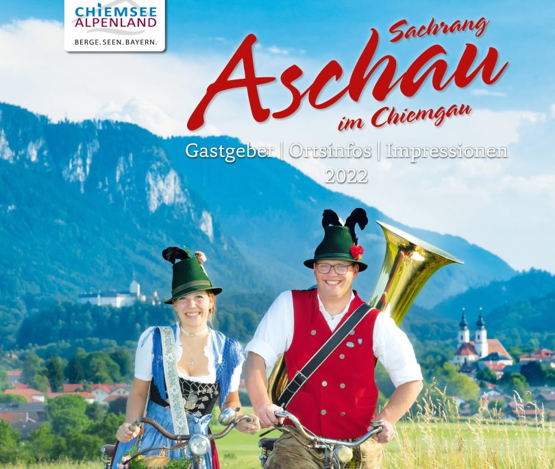 Druckfrisch ist der neue Gastgeber- und Informationsprospekt 2022 für Aschau i.Chiemgau & Sachrang eingetroffen und ab sofort erhältlich. Eine moderne und noch klarere Gestaltung stärken die Markenphilosophie unseres Tourismusortes. Auch sind alle Angaben erfasst, die ein Interessent im Vorfeld der Buchung/eines Besuches in Aschau i.Chiemgau oder Sachrang erwartet (z.B. Preise, Unterkünfte, Angebote, Infos von A – Z, Jubiläen 2022 etc.). Außerdem wurden in dieser Broschüre auch wieder neue Impressionen und Angebote eingearbeitet. Die ansprechende grafische Gestaltung stammt von Margarte Baumgartner aus Wasserburg. Das Titelbild, auf dem die Aschauer Marketenderin Helena Klampfleitner und der Erste Vorstand der Musikkapelle Aschau Simon Pertl zu sehen sind, soll schon einen Vorgeschmack auf die beiden Feste, der Patronatstag 2022 des Bundes der bayerischen Gebirgsschützenkompanien und das Bezirksmusikfest mit Feier des 175-jährigen Jubiläums der Musikkapelle Aschau, verschaffen und auf die geplante Festwoche im Mai einstimmen. Mit dem neuen Ortsprospekt ist man nun für das bevorstehende touristische Jahr im Priental gerüstet. Erhältlich ist das Aschauer Hauptwerbeprodukt kostenlos in den Tourist Infos Aschau i.Chiemgau, Tel. 08052/90490, info@aschau.de und Sachrang, Tel. 08057/909737, info@sachrang.de.