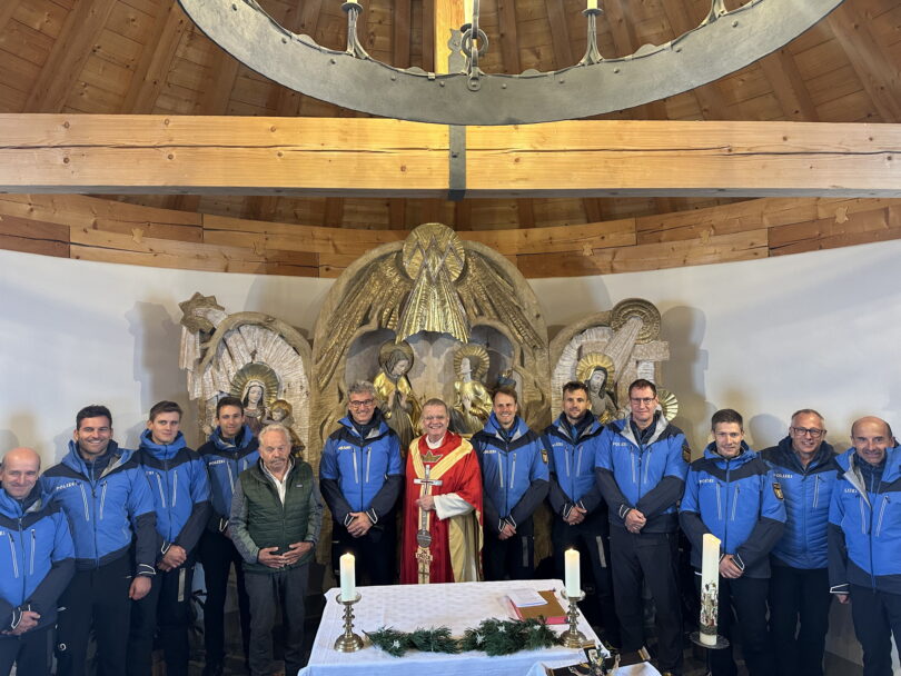 Der Gottesdienst fand anschließend an Deutschlands höchstgelegenem Gotteshaus, der Kapelle Maria Heimsuchung, statt. Zelebrant der Messe war dieses Jahr Herr Monsignore Andreas Simbeck. Umrahmt wurde der Gottesdienst durch das Bläserensemble des Polizeiorchesters Bayern sowie von Angehörigen des Alpinen Einsatzzuges des Polizeipräsidiums Oberbayern Süd.