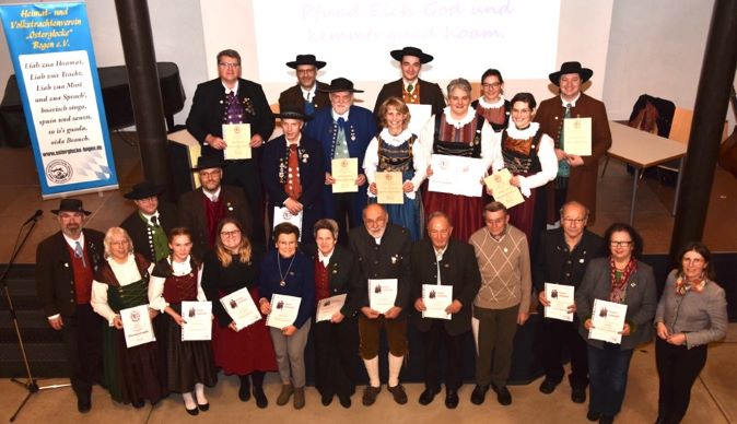 Einige Mitglieder erhielten neben ihrer Ehrung für langjährige aktive Mitgliedschaft noch eine besondere Auszeichnung: die Ehrung für besondere Verdienste im Trachtengau Niederbayern.