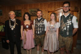 von links nach rechts: Josef Niedermeier Gaukönig in Luftgewehr Auflage (Jungschützen Taufkirchen), Theresa Pleiner, Gaudamenkönigin Luftgewehr (Schützengesellschaft Edelweiß Niederstaubing), Andreas Kehrer, Gaukönig Luftgewehr (Schloßschützen Hubenstein), Janina Bart Gaujugendkönigin Luftgewehr(Stephanstaler Kögning) zusammen mit Christian Grasser, Gaukönig Pistole (Eichenlaub Wambach)sind die neuen Dorfener Gaukönige 2024