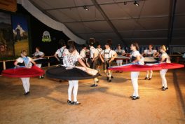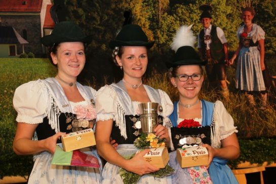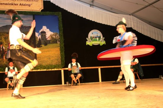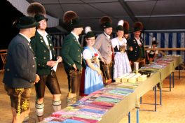 Nach der Preisverleihung, bei der es Schmuckschatullen und schöne Trachtenschals gab, zeigte die bisherige Gaugruppe ihr plattlerisches und tänzerisches Können. Anschließend war großes Zusammentreffen in der gemütlichen Bar und im Café-Zelt. Zur Unterhaltung spielte dabei die Anzwies-Musi aus Atzing auf.