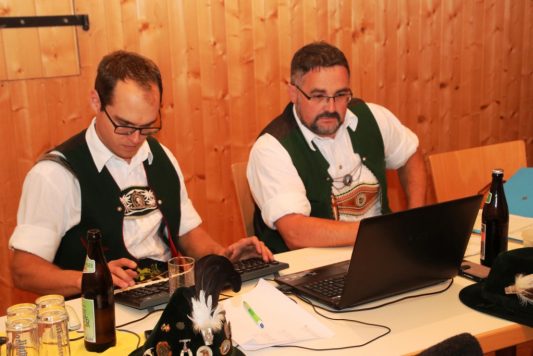 Für die Preisrichter Klaus Aiblinger (Niederaschau), Christoph Bauer jun. (Sachrang), Viz Brandstetter (Unterwössen), Georg Fischer (Prien), Andreas Hell (Schleching), Lorenz Mühlberger (Wildenwart), Andreas Rummelsberger (Bernau) und Engelbert Steiner (Übersee) war es nicht einfach, die feinen Unterschiede zu bewerten. Ihre Ergebnisse wurden umgehend von Christian Singhartinger, Claudia Rabe, Elisabeth Tengler und Jürgen Wiegmann im Auswertungsbüro neben dem Festzelt zusammengezählt. Die niedrigste und höchste Bewertung wird dabei immer gestrichen, so dass noch jeweils die Punkte von sechs Preisrichtern für das Endergebnis übrigbleiben. Elf Dirndl mussten wegen Punktgleichheit nochmals antreten, um durch das sogenannte Rittern ihre endgültige Platzierung zu erreichen.