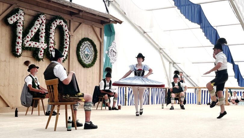 Traditionell werden das Gaudirndldrahn und das Gaupreisplatteln beim Gaufest-Ausrichter in dessen Festzelt durchgeführt. Heuer ist der Trachtenverein „D´Griabinga“ Hohenaschau Gastgeber für gut zehn Festzelttage. Beim Gaudirndldrahn konnten sich zahlreiche Besucher von den hervorragenden Leistungen überzeugen, die sich aufgrund langer und intensiver Probenarbeit ergaben. Für die gekonnte musikalische Begleitung sorgte Musikwart Andreas Hilger mit seinen „Oidn Bekannten“. Und für die gerechte Bewertung sorgten acht Preisrichter unter der Leitung von Obmann Lorenz Mühlberger aus Reit im Winkl. Zu den Preisrichtern gehörte auch Sepp Spiegelberger, selbst langjähriger Chiemgauer Preisrichterobmann. Der Wildenwarter hat bereits vor 55 Jahren mit dem Preisrichten angefangen und hat somit reichliche Erfahrung beim Bewerten von Auftritt, Tracht und Gesamteindruck. Weitere Preisrichter waren Andreas Hell aus Schleching, Sepp Hacher vom GTEV Marquartstein-Piesenhausen, Christian Lechner aus Höhenmoos, Michael Pfaffinger aus Hittenkirchen, Peter Reiter vom GTEV Niederaschau, Engelbert Steiner aus Übersee und Christoph Bauer vom Trachtenverein Reit im Winkl. Letztlich werden die vier Preisrichter in die Wertung genommen, deren Noten mittig waren. 14 Dirndl kommen dann in die Gaugruppe.