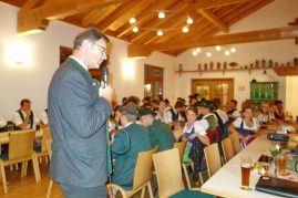 Festleiter Michael Schlosser hielt aus seiner Sicht Rückblick auf das Fest und erinnerte daran, dass der Schlüssel des Erfolgs war, weil man stets an Lösungen und nicht an Problemen gearbeitet habe. Ausserdem – so der Festleiter – hatte der Verein die richtigen Leute zur richtigen Zeit mit den richtigen Aufgaben betraut und damit perfekte Ergebnisse erzielt. „Die Festschrift aus der Hand von Albert Rauch und die Festzeichen aus dem Hause der Trachtlerfamilie von Gerhard Fischer waren nur zwei herausragende Leistungen, eine große Mannschaft hat gut und Gott sei Dank auch unfallfrei gearbeitet“, so der Festleiter, der sich auch freute, dass während der gesamten Festzeit weder eine Beschwerde von den Nachbarn noch sonst im Rahmen der Veranstaltungen zu behandeln war. „Das hohe Verständnis der Dorfgemeinschaft und die hohe Zimmermannskunst der Aktiven mit ihrer sehenswerten Bar waren genauso löblich wie die Tatsache, dass wir beim Festzeltabbau 104 Leute zum Arbeiten und zum Mittagessen hatten. Ein besonderer Dank galt der Feuerwehr, die besonders beim großen Festsonntag wie auch beim arg verregneten Gaupreisplatteln alle Hände voll zu tun hatte. „Schee war´s und es war ein echt bäriges Gaufest“ – so Michael Schlosser.