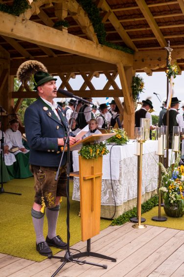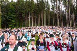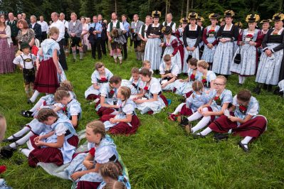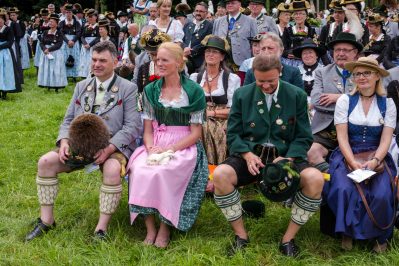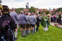 Erster Höhepunkt des Festtages war der Gottesdienst, den Pfarrer Klaus Hofstetter mit Pfarrer Josef Steindlmüller und Pater Dr. Moses Asaah Awinongya aus Ghana feierte. Rund 1800 Trachtler aus den 23 Vereinen des Chiemgau-Alpenverbandes und die Mitglieder der Atzinger Ortsvereine versammelten sich mit fast 40 Fahnenabordnungen zum Feldgottesdienst. Die musikalische Gestaltung übernahmen die Musikkapelle Wildenwart, das Chiemgauer Saitenensemble sowie der Festchor Atzing unter der Leitung von Rainer Schütz.