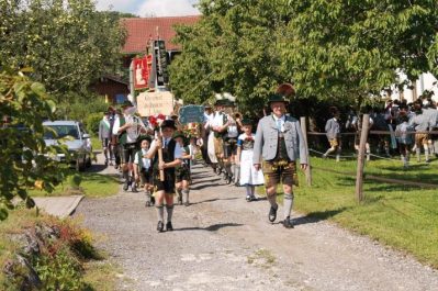 Nach dem Kirchgang am Samstagabend folgte am Sonntag ein Festzug durch das Dorf. Wie beim Gaufest üblich, gab es zur Freude aller Schweinebraten. Auch Kaffee und Kuchen durften nicht fehlen. Dazu luden Vorstand Waldinger und seine Frau Susi ein. Gemütlich und ausgelassen wurde dabei geratscht, wie sonst beim Gaufest, so berichtet die Mühldorfer Schriftführerin.