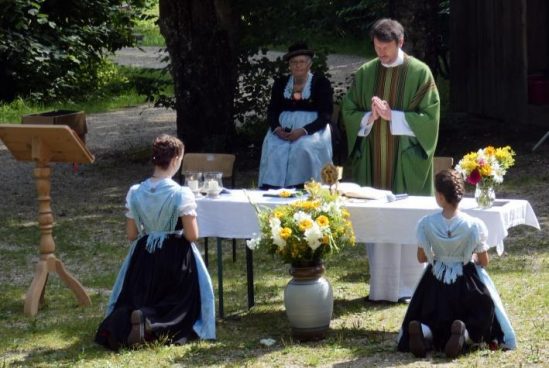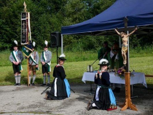 Im schönen Obstgarten des Trachtenvorstandes Martin Impler haben fleißige Helfer einen Altar für den Freiluft-Gottesdienst aufgebaut. Barbara Huber, aktive Schalkfrau, zelebrierte den Wortgottesdienst. Bernadette Kurz, die Jugendleiterin des Vereins brachte die Fürbitten dar, abgestimmt auf die momentane Situation und die Jungendvereinsarbeit. Musikalisch umrahmte die Trachtenkapelle Dettendorf den Gottesdienst. Angeführt von der Trachtenkapelle folgten die Fahnenabordnungen der Orstvereine und den Edelweißern mit ihren 90 Vereinsmitgliedern um beim Herbergswirt in Kematen den Tag ausklingen zu lassen.