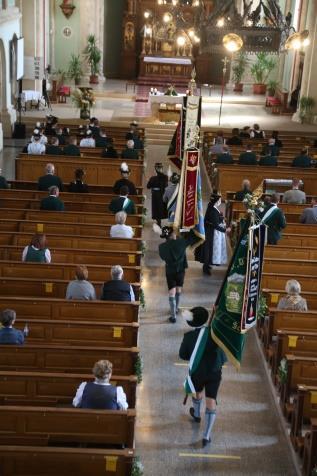 Wie groß die Sehnsucht nach gemeinsamen Unternehmungen ist, spiegelt sich in der Umsetzung der Vereine wieder. Und so marschierten einige unter ihnen angeführt von ihren Fahnen gefolgt von den Vereinsmitgliedern zur Feldmesse oder zogen vereint in ihre Pfarrkirchen ein. Vielerorts durften aufgrund der Lockerungen der Kontaktbeschränkungen sogar mehrere Vereine gleichzeitig zusammenkommen.