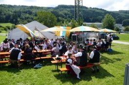 Meist im Freien fand der Gaufestsonntag für viele beim Wirt am Ort seinen krönenden Abschluss, untern Himmel weiß und blau.