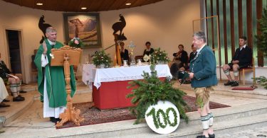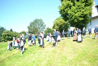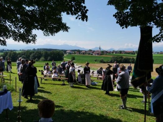 Zum Feldgottesdienst, zelebriert von Pater Bernhard Stiegler, kam auch eine Abordnung des befreundeten Trachtenvereins aus Reichertsheim. Bei der Bevölkerung fand der Gottesdienst, der musikalisch von der Blaskapelle Aschau umrahmt wurde ebenso großen Anklang. Nach dem gemeinsamen „Großer Gott wir loben dich“ schnoizten die Goaßlschnoizer noch einen auf. Nach einem kräftigen Schlussapplaus resümierte Christian Mayerhofer, Vorstand der Stoabacher: „Des is sche, das ma bei uns so wos a kurzfristig macha kon.“