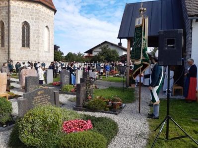 Sie feierten im Dorfpark in Ainring den sonntäglichen Festgottesdienst und gedachten dabei der verstorbenen Vereinsmitgliedern, da der Jahrtag ausfallen musste. Der Gottesdienst wurde von der Musikkapelle Ainring musikalisch umrahmt. Zwei Jugend-Dirndl übernahmen den Ministrantendienst. Die Mesnerin Maria Utzmeier (Spenzerfrau des Vereins) las die Lesung. Die Fürbitten wurden von Mitgliedern der Jugend-, Aktiven- und Spenzerfrauengruppe vorgetragen. Ein Grußwort sprach der 3. Bürgermeister und Vereinsmitglied Martin Strobl. Nach dem Gottesdienst nutzten sie den feierlichen Rahmen, um die Ehrungen für langjährige Mitglieder durchzuführen. Bei der anschließenden Einkehr im Gasthaus Ulrichshögl ließen sie den Tag gemütlich ausklingen.