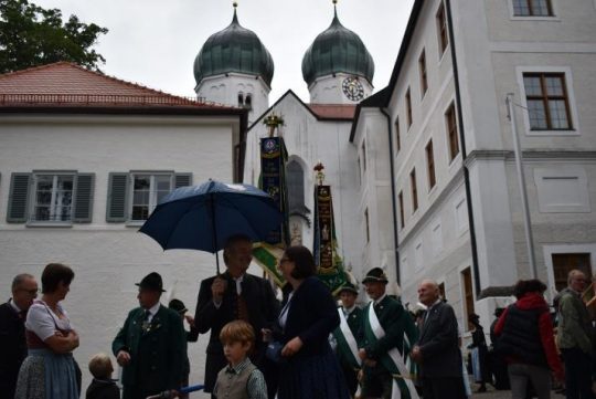 Erstmalig hatten sich die beiden Vereine zu einer Unternehmung zusammengeschlossen. In der festlich geschmückten Klosterkirche in Seeon feierten sie gemeinsam den Gottesdienst, zelebriert von Pfarrer Rüdiger Karmann, der mit humorvollen aber auch mit nachdenklichen Worten zu den Gläubigen sprach. Unter ihnen waren auch die drei Bürgermeister der Gemeinde Seeon-Seebruck. Den musikalischen Rahmen bildete die Blaskapelle Seeon. Im Anschluss traf man sich noch im Pfarrgarten.