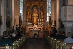 Die drei Vereine haben zusammen in der Pfarrkirche „Mariä Himmelfahrt“ in Fridolfing, die als größte Dorfkirche Deutschlands auch als Dom des Salzachtales bezeichnet wird, einen schönen Gottesdienst gefeiert. Mit Gauliederwart Markus Gromes war die musikalische Umrahmung in besten Händen. Die Lesungen und als Abschluss a paar schöne boarische Gedanken über’s Vater Unser trug Marianne Heidenthaler, Leiterin des Sachgebietes Mundart, Brauchtum, und Laienspiel, vor. Anneliese Köberle trug die selbst geschriebenen Fürbitten in heimischem Dialekt vor; so wirkten die drei Vereine bei der Gottesdienstgestaltung aktiv mit. Zusammensitzen, Mittagessen und Ratschen war im Anschluss angesagt, als jeder Verein bei seinem Wirt am Ort einkehrte.