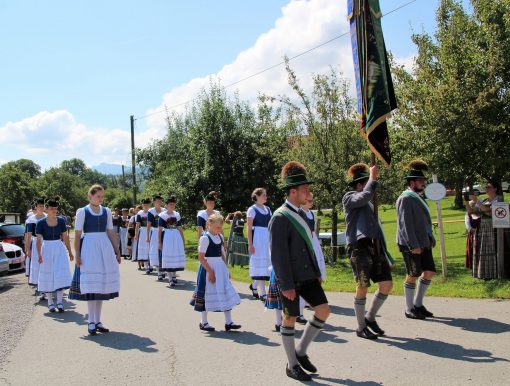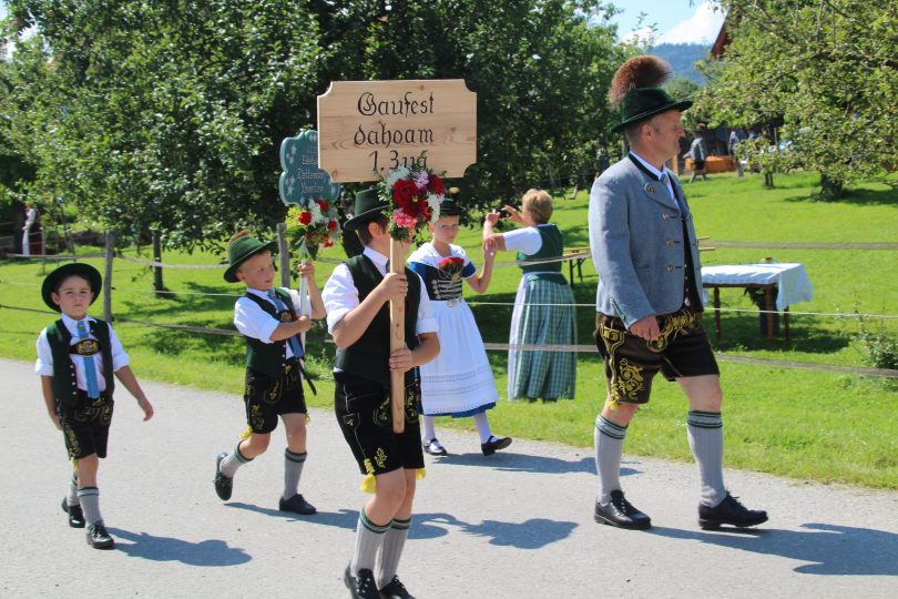 Mit sichtbarem Wehmut betrachteten Jugendleiterin Bernadette Kurz und 1. Vorplattler Martin Huber jun. nach einem den Abstandsregeln angepassten Festzug, das gesellschaftliche Zusammentreffen am Gasthaus Weingast. Beiden, sowie den übrigen Trachtlern fehlten die 60 Mädchen und Buben der Kinder- und Jugendgruppen, sowie die Aktiven mit ihren Auftritten. Seit März sind sämtliche Proben fürs Platteln oder Dirndldrahn untersagt. Ebenso gäbe es behördlich angeordnet keine öffentlichen Auftritte, was die 17-jährige Kranken- Gesundheitspflegerin Miriam Nagl, sowie die Jackl-Schwestern Antonia (21) und Johanna (18), beide Industriekauffrau, ebenso Schade finden. Das „Gaufest dahaom“ so die drei jungen Damen stolz ihr Miedergwand nach Außen zeigend, signalisiere Hoffnung auch die „Hoamat“ Treu dem guten Brauch zu schätzen.