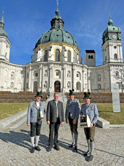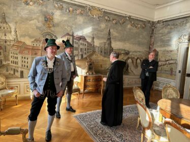 Seit Generationen besteht eine sehr enge und bedeutende Verbindung zwischen dem Trachtenverein “D‘ Griabinga”, der Familie von Cramer-Klett und Kloster Ettal. So wird auch der Hochwürdigste Herr Abt Barnabas Bögle zusammen mit dem Ortspfarrer Paul Janssen den diesjährigen Festgottesdienst beim Gaufest am Sonntag, 28. Juli 2024 um 10 Uhr in Hohenaschau abhalten. Bei einem Besuch durch eine Delegation vom Festausschuss (Erster Vorstand Claus Reiter, Festleiter Rudi Angermaier und Erster Kassier Herbert Reiter) und mit Ortspfarrer Paul Janssen im Kloster Ettal wurden alle Details und Abläufe vor- und abgesprochen. Abt Barnabas Bögle freute sich sehr über den Besuch der Hohenaschauer Trachtler und gab anschließend noch verschiedenste Einblicke vom Kloster Ettal bei einem Rundgang. An vielen Stellen ist noch heute die sehr enge Verbindung zur Familie von Cramer-Klett verankert und zu sehen.
