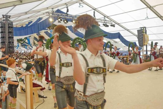 Unter anderem sind die Auftritte im Festzelt und der Abmarsch zum Festzug zu sehen.