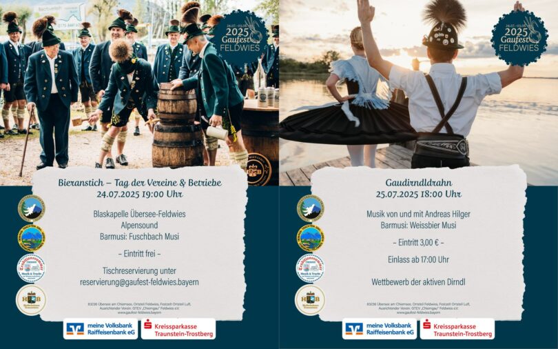 Beim Trachtenverein Feldwies in der Gemeinde Übersee am Chiemsee beginnt am Donnerstag, 24. Juli das Gautrachtenfest des Chiemgau-Alpenverbandes für Tracht und Sitte.