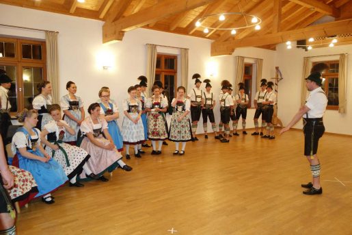 Ihre nachösterlichen Tanz- und Plattler-Aktivitäten haben die Dirndl und Buam der Gaugruppe vom Chiemgau-Alpenverband aufgenommen, erste Probe war im Vereinshaus vom Trachtenverein „Daxenwinkler“ Atzing unter der Leitung von Gauvorplattler Thomas Stoib aus Wildenwart. Die Gaugruppe, die jeweils nach dem Gaudirndldrahn und dem Gaupreisplatteln für ein Jahr wieder neu zusammengestellt wird, vertritt den Gauverband bei dessen eigenen Veranstaltungen wie dem Gauheimatabend (heuer am Samstag, 29. Juli in Atzing) sowie auch ausserhalb des Chiemgaus. Der nächste öffentliche Auftritt ist am Freitag, 28. April bei der Veranstaltung des Münchner Festrings „Boarischer Lenz“ im Löwenbräukeller (siehe nachfolgende Informationen). Unsere Aufnahmen zeigen einige Eindrücke von den jüngsten Proben der Chiemgauer Gaugruppe in Atzing.