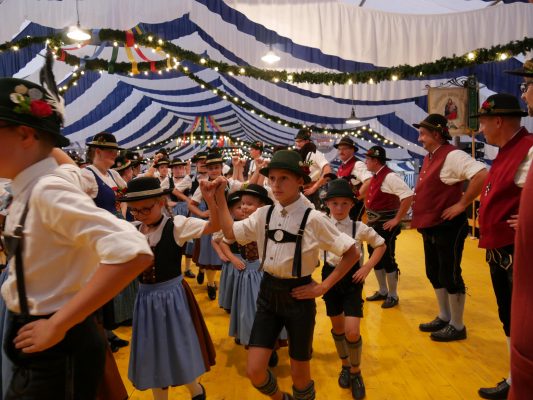 Sie sorgten für tosenden Abschluss-Applaus, die 20 aktiven Paare der Altöttinger Trachtler, die dem Gauheimatabend vom Gauverband I im Festzelt im wahrsten Sinne die Krone aufsetzten. Jeweils zehn Paare „Jung“ und ebenso viele „Alte“ zogen in eindrucksvoller Weise unter den Klängen der Lindacher Blaskapelle vorbei an den rund 1.200 Besuchern auf die Bühne und somit in die Herzen der Zuschauer. Das abschließende Bild einer riesigen Krone war einfach imposant.