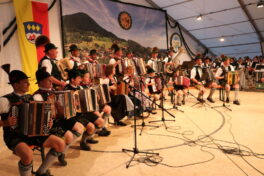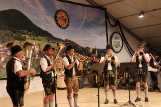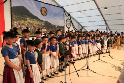 Nach dem Totengedenken fand am Freitag, den 12. Juli im vollen Brannenburger Festzelt der diesjährige Gauheimatabend statt. Traditionell starteten die Kinder und Jugendlichen nach dem “Gruß an Oberbayern” der Festmusi, der Musikkapelle Brannenburg” mit dem Auftanz in den Heimatabend, durch den Maria Gasteiger und Sepp Bliemetsrieder führten.