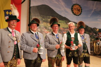 Besonders freute sich 2. Gauvorstand Markus Kronberger in seiner Ansprache, daß er neben den zahlreich erschienenen Trachtlern aus dem Gaugebiet und Mitgliedern der Ortsvereine auch die Vertreter der beiden Patengaue begrüßen durfte: so war vom Chiemgau-Alpenverband Gauvorstand Thomas Hiendl mit mehreren Ausschußmitgliedern vor Ort. Auch Michi Hauser, Gauvorstand beim Gauverband I, bei dem der Bayerische Inngau-Trachtenverband im Vorjahr die Patenschaft über die neue Gaustandarte übernommen hat, war mit etlichen Ausschußmitgliedern anwesend. Außerdem war der Oberlandler Gauverband durch Gaukassier Andreas Kirchhuber, der Unterinntaler Trachtenverband aus Tirol mit Obmann Markus Nachtschatten und die Gebirgsschützen durch Günter Reichelt vertreten. Auch Günter Frey vom Bayerischen Trachtenverband war mit etlichen Sachgebietsmitgliedern und Andreas Wachs sowie Stephanie Perfler von der Bayerischen Trachtenjugend vor Ort. Außerdem konnte Markus Kronberger Landrat Otto Lederer, die beiden Landtagsabgeordneten Sebastian Friesinger und Sepp Lausch sowie Christian Glas vom Bayernbund begrüßen.