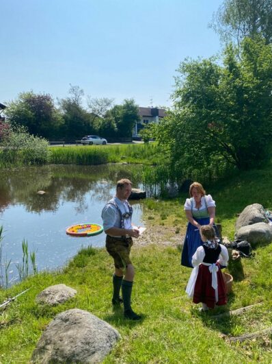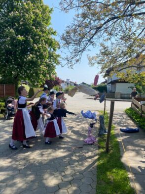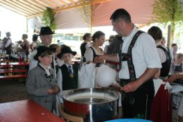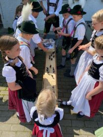 Bereits gegen 9 Uhr trafen die ersten Vereine mit Ihren Nachwuchstrachtlern in Antdorf ein. Nach einer feierlichen Andacht begannen die ersten Kinder- und Jugendgruppen bereits mit ihren Ehrtänzen, Vergelt´s Gott dabei an Franz Veitinger, Erhard Hauptenbuchner und Stefan Funk für´s schneidige Aufspielen. Für die anderen ging es zu den 6 Spielstationen, welche im Dorf verteilt waren. Maßkrugschieben, Enten schätzen, Bildermemory mit Laptop und Beamer, Wäschewerfen, Zaunbauen und Zielspritzen bei der Feuerwehr standen dabei auf dem Programm. Gut 500 Kinder und Jugendliche aus den 25 Loisachgauvereinen und dem Patenverein „Stoaröserl“ aus Obersöchering erfreuten sich an diesem abwechslungsreichen Programm. Ein besonderer Dank gilt dabei Marietta Pfluger für die perfekte Planung und Organisation des Tagesablaufens und der Spielstationen.