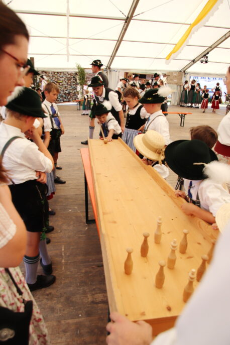 Für die Jugend war es ein abwechslungsreiches Programm mit sauberen Auftritten von Auftanz, Mühlrad, Laubentanz, Neunerschlag, Schuhplattler bis zu Volkstänzen, das abschloß mit einem gemeinsamen Buabaplattler von 95 Plattlern auf der Bühne und davor. Durch das Programm des Nachmittags führten die Gaujugendvertreter und die Musikanten Moritz Köpf, Roman und Manfred Nuscheler sowie Vereinsmusikanten spielten die Musikstücke zu den Auftritten. Beim Spielewettbewerb mit Stoßbudla, Eierlaufen, Maßkrugschieben, Schätzen und Quizfragen beantworten galt es viele Punkte zu erreichen. 1. Gaujugendvertreter Markus Lory dankte allen für die so zahlreiche Teilnahme und gab als Sieger des Quiz die Jugend von D’ Schloßbergler Hopferau vor Alpengruß Wildsteig und Edelweiß Lechbruck bekannt. Die Stoßbudlbahn wandert nun für ein Jahr in die Hopferau und kann dort genutzt werden. Das Jugendleiterquiz gewann Buching vor Hopferau. Der Gaujugendtag mit buntem Programm an diesem sonnigen heißen Tag war für die Jugend wieder ein Höhepunkt im Jahreslauf. (mk)