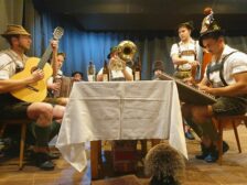 Der Abend begann schwungvoll mit der Tschagguns Polka gespielt von den Außengebirg-Musikanten. Danach spielten und sangen die fünf Volksmusikensemble abwechselnd in der ihnen eigenen Klangart. Passend zum Motto des Abends „Hopfen und Malz – Gott erhalts“ waren die Texteinlagen von Markus Gromes zwischen den einzelnen Absätzen dem Thema „Bierherstellung“ gewidmet. Die sechs jungen Musikanten aus Waging, Inzell, Siegsdorf, Lauter und Altenmarkt, die als Außengebirg-Musikanten auftreten, haben im Stil der Weißenbacher Tanzlmusi ganz bärig aufgespielt. Sie spielen ihre Musikstücke immer auswendig, was den Moderator Gromes sichtlich beeindruckte, weil es viel Erfahrung dazu braucht. Auch das Publikum konnten sie mit dern vorgetragenen Walzern und Polkas richtig begeistern. Die Hubertus Musikanten aus Riedering haben die erste Runde mit dem Christl Landler abgeschlossen. Die fünf Burschen kommen aus Riedering und spielen eine schneidige Musi – Polkas, Boarische, Märsche und ähnliches, in der Bestezung der legendären Rotofenmusi aus Berchtesgsaden. Trotz des Namens seien nur zwei von ihnen Jager, verrieten sie auf Nachfrage von Gromes. Die leiseren Töne des Abends kamen von der Kressenberger Soatenmusi. Mit Zither, Gitarre und Bass spielten die zwei Frauen und zwei Männer aus Inzell, Vachendorf und Siegsdorf einfühlsame Stücke wie den „Freundschaftswalzer“, den „Oberhausbergmarsch“ oder den Walzer „Für d’Mama“.