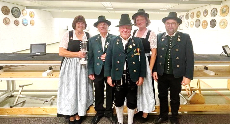 Bericht: Sybilla Wunderlich – Foto von links nach rechts: Teilnehmer Schützengesellschaft Schleching, Johanna Küfner,(2.) Hubert Könen,(1.) Oskar Knoll (3.) Sabine Friedenberg, Lothar Eckstein