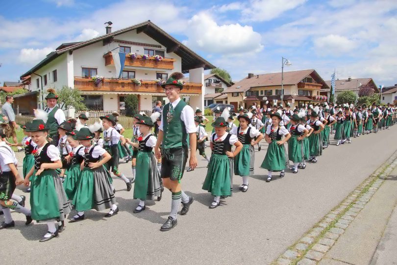 Dieses Gautrachtenfest des Oberen Lechgau-Verbandes 2022 verbunden mit 100 Jahre D’Schloßbergler Hopferau (Gründung 1921) war nach zwei Jahren Coronapause etwas ganz Besonderes. Beginnend mit dem Tag der guten Nachbarschaft am Freitag – einem Sternmarsch und Unterhaltungsabend den Musikkapellen aus Hopferau, Hopfen, Eisenberg und Seeg.