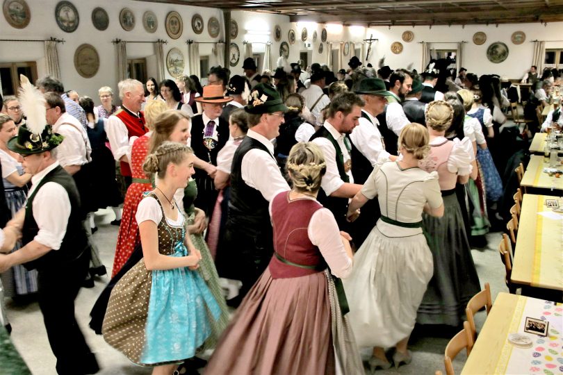 Ihren siebten gemeinsamen Ostervolkstanz veranstalteten am Ostermontag die vier Trachtenvereine ‚Alpenrose‘ Grassach-Tittmoning, ‘D’Heulandler’ Törring, ‘D’Salzachtaler’ Fridolfing und ‘D’Stoabergler’ Palling (Gauverband I) im Gasthaus Glück in der Ledern und der Vorstand des Trachtenvereins ‘Alpenrose‘ Grassach-Tittmoning. Jürgen Dietzsch, konnte dazu sehr viele Trachtler und Tanzbegeisterte begrüßen. Besonders erfreut zeigte er sich nach der langen Corona-Pause über die Anwesenheit zahlreicher junger Leute, die fleißig das Tanzbein schwangen und für zünftige Stimmung sorgten. Die Stoißberg Muse spielte schneidig zu den Tanzrunden auf und Gemeinschaftsplattler sorgten für weitere Abwechslung. Zum Schluss der gelungenen Veranstaltung bedankten sich die Vorstände der ausrichtenden Vereine für’s Kemma und mit einer Tasche voller leckerer Spezialitäten bei Gauvolkstanzwartin Hildegard Kallmaier für die erneute Tanzleitung.