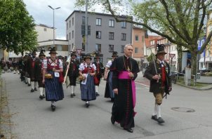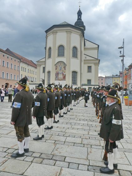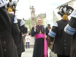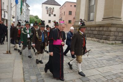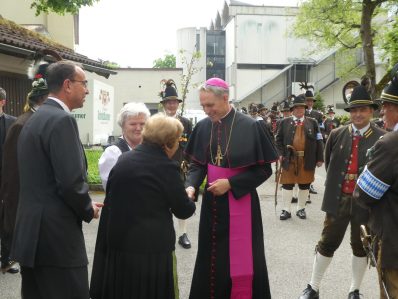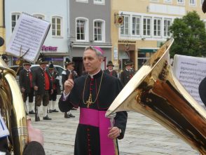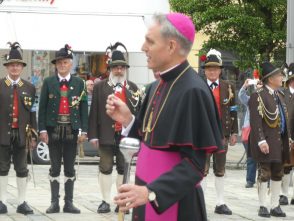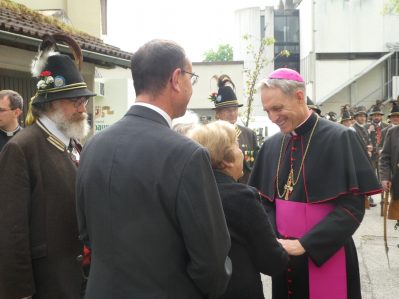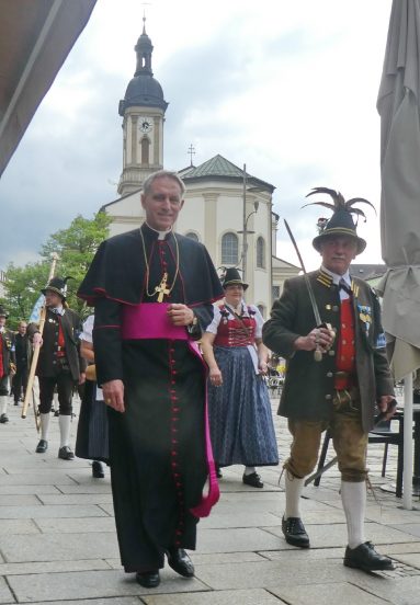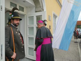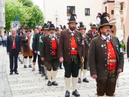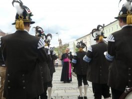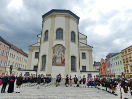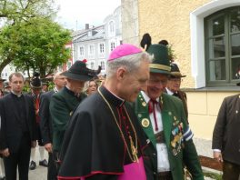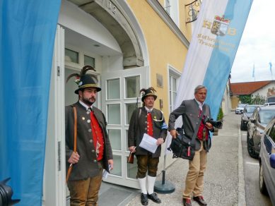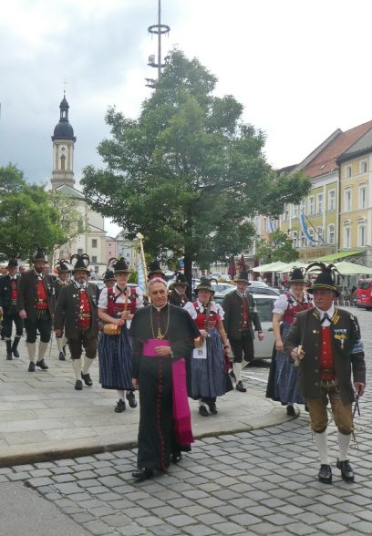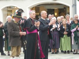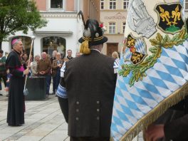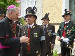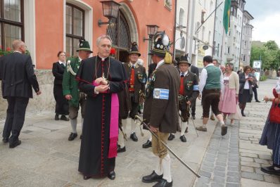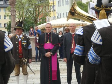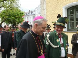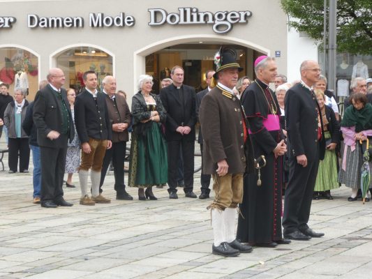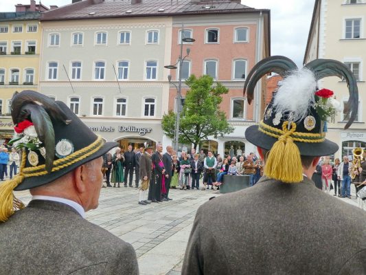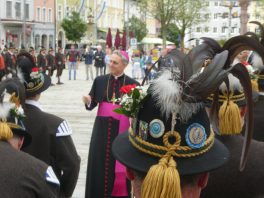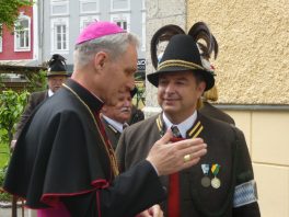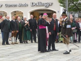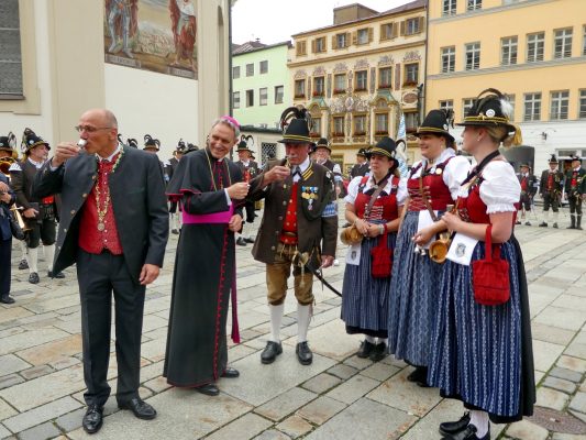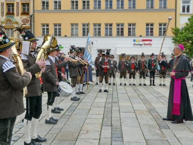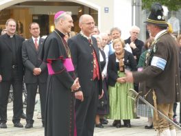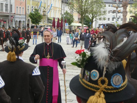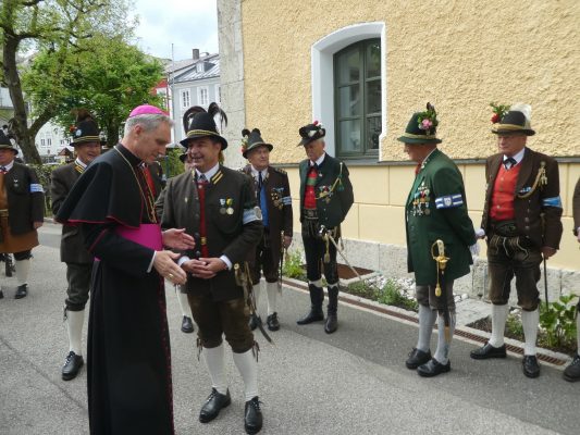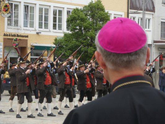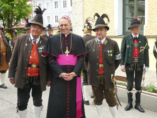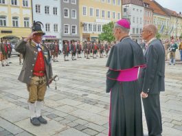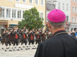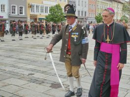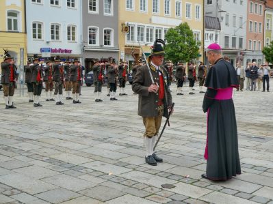 Auf dem Stadtplatz von Traunstein ehrte die Gebirgsschützenkompanie von Traunstein Dr. Georg Gänswein, Privatsekretär von Papst emer. Benedikt XVI Joseph Ratzinger, den selbst eine starke persönliche Nähe zur Stadt Traunstein verbindet. Ehe sich die Ehrung im Saal des Hofbräuhauses Traunstein vollzog, war auf dem Stadtplatz ein offizieller Empfang der Gebirgsschützenkompanie Traunstein mit ihrem Hauptmann Sebastian Knittler mit Musikstücken, Ehrensalut und Abschreiten der Ehrenfront. Davon einige Bilder.
