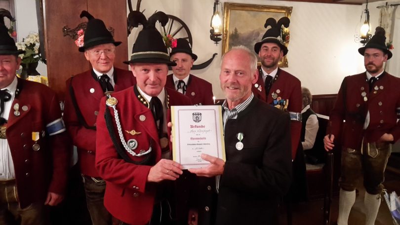 Die GSK Samerberg konnte ihrem aktivem Kameraden Georg Wohlschlager zu seinem 70. Geburtstag gratulieren. Hierzu würdigte Hptm. Fritz Dräxl in einer kurzen Ansprache die Verdienste und das Leben Wohlschlagers und zeichnete den rüstigen 70er mit der Verdienstmedaille der GSK Samerberg in Silber aus. Anschließend gratulierte der Salutzug mit einer dreifachen Salve.