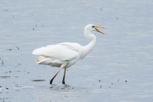 Ein böiger, kalter Wintertag begrüßte mich am Chiemsee. Tiefhängender Hochnebel bedeckte die Sonne und verhinderte schönes Fotolicht. Nur wenige Wasservögel belebten die Hirschauer Bucht. Ein Silberreiher jagte erfolgreich