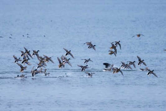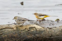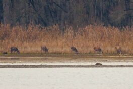 Kleinfische zwischen den Lücken im ersten Eis dieses Winters. Ein ungewöhnliches Stelzenpärchen jagte Insekten am Ufersaum des Sees. Die Gebirgsstelze erbeutete wiederholt im Sprung an Stängeln sitzende Fliegen. Rothirschkühe, begleitet von einem Kapitalen Hirsch, ästen entspannt das frische Grün am Seeufer in der Bucht. Ein junger Habicht sorgte für Aufregung und einer kleinen Schwarm gründelnder Stockenten flüchtete vor dem, allerdings erfolglosen Jäger. Auch mich trieb Kälte, welche langsam durch die Kleidung drang, zum Aufbruch.