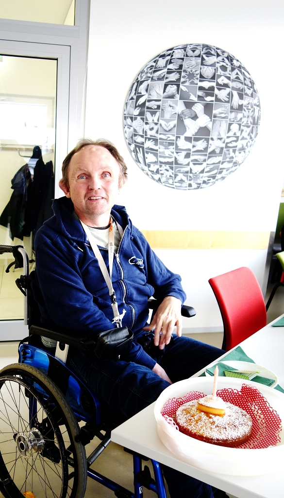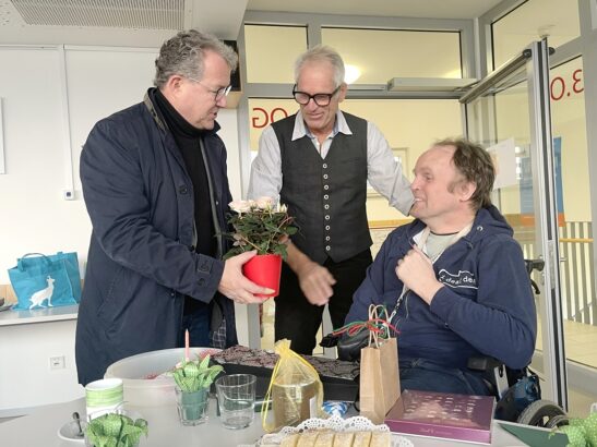 Fotos: Hötzelsperger – Eindrücke vom 56. Geburtstag von Mathias Stampfl im Haus „Leben mit Handicap“ in Prien – u.a. mit Therapeut Wolfgang Stuckenberger, MdL a.D. Klaus Stöttner und Kuratorin Ingrid Fricke.