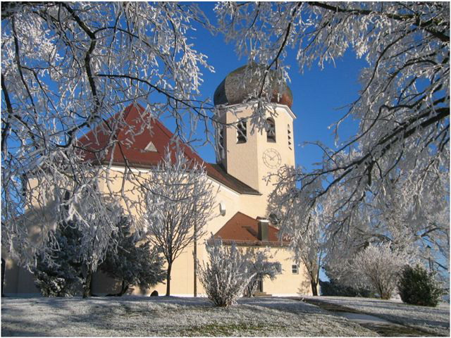 Foto: Hötzelsperger – Blick auf winterliche Pfarrkirche “Christkönig” Wildenwart